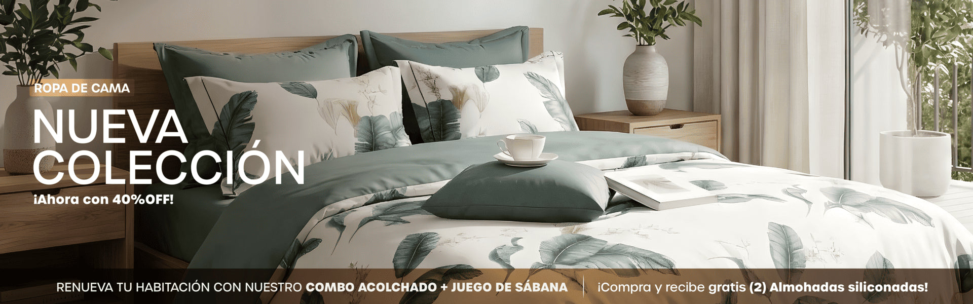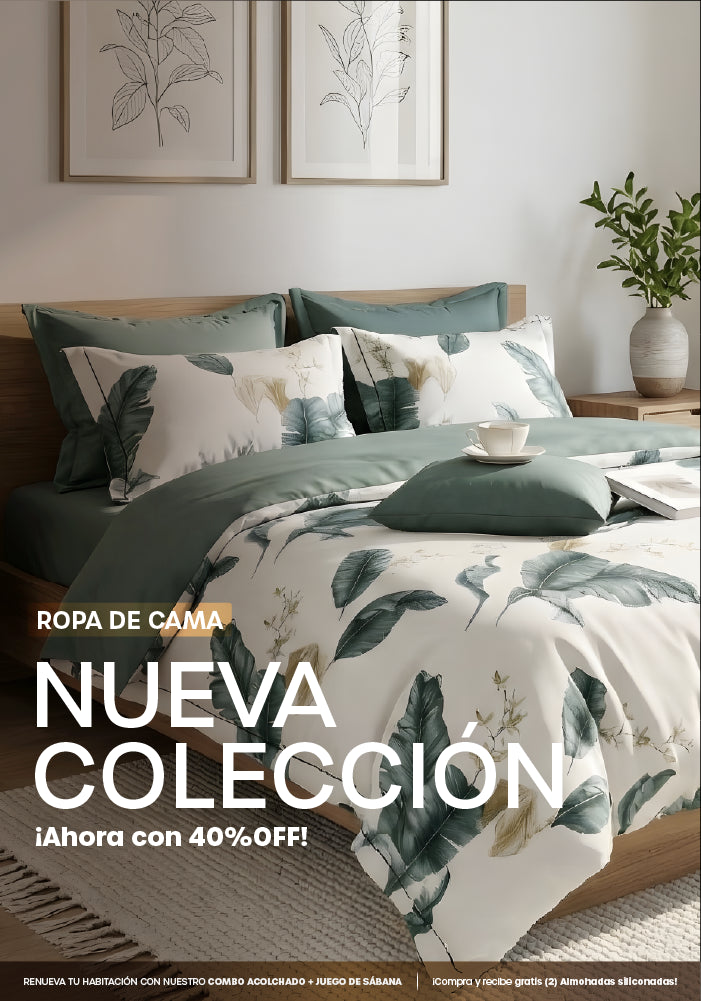 KIT ACOLCHADO + JUEGO DE SABANA BOTANIC + (2) ALMOHADAS SILICONADAS