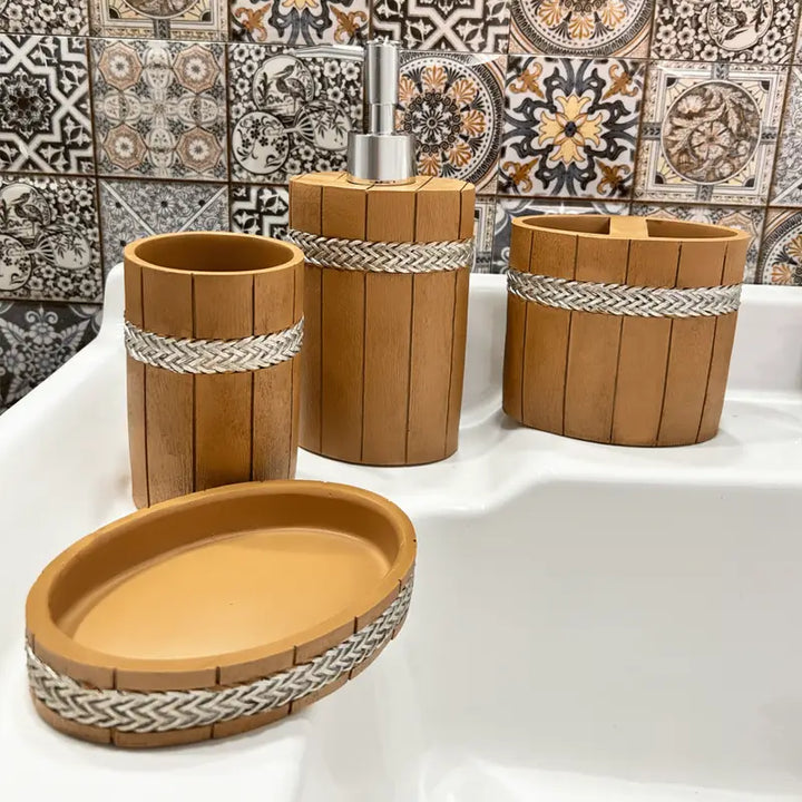 ACCESORIOS DE BAÑO 4 PIEZAS BAMBU