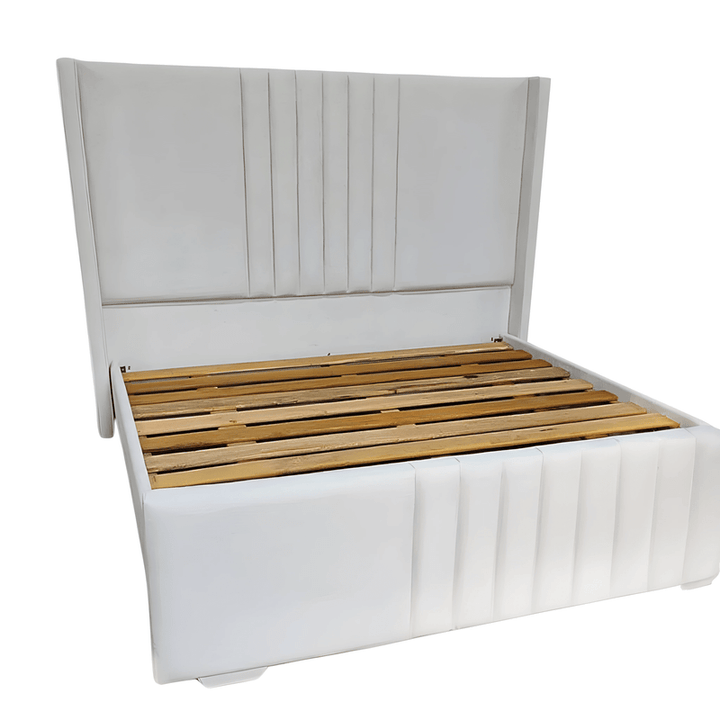 Espaldar y base desarmable con pasa tornillo y tablado en amarillo cepillado.