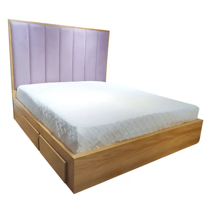 Espaldar y base desarmable con pasa tornillo y tablado en amarillo cepillado.