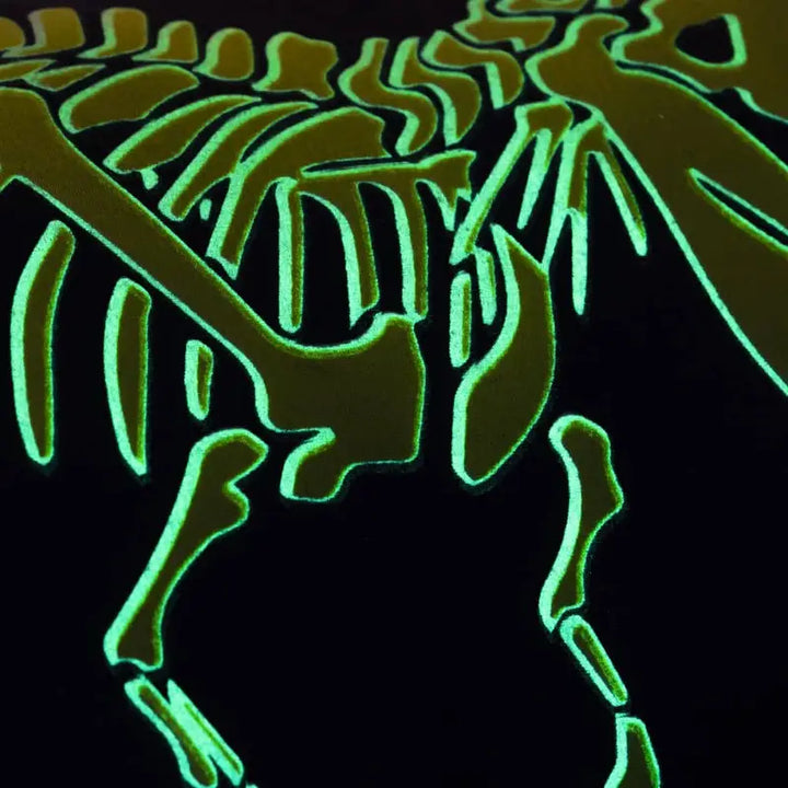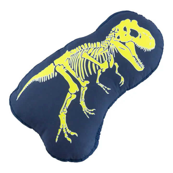 Cojín de figura con diseño de Dinosaurio, estampado y con tinta especial que brilla en la obscuridad.
