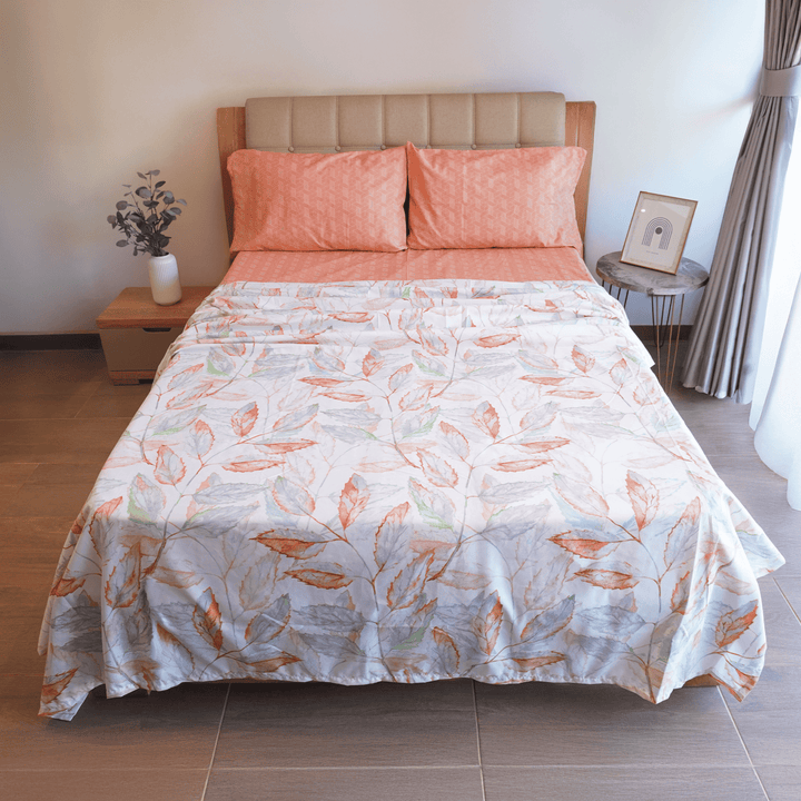 JUEGO DE SÀBANA PRINT HOJAS CORAL