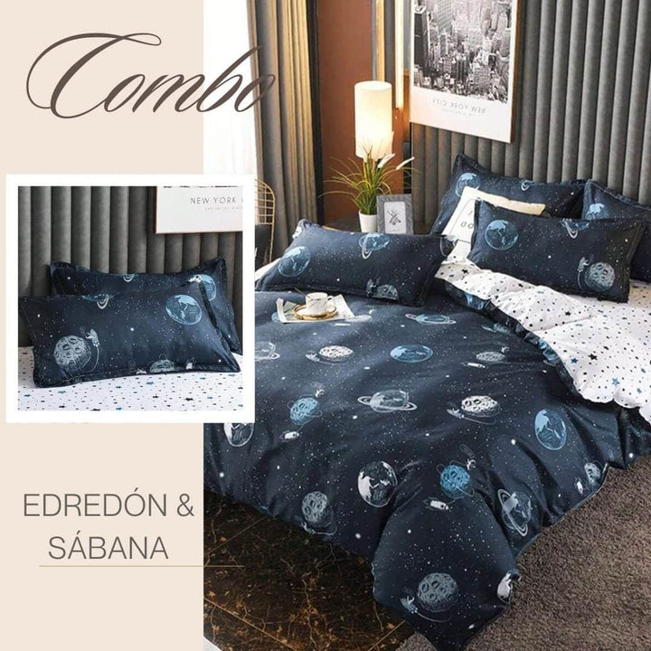 KIT ACOLCHADO + JUEGO DE SABANA ASTRONAUTAS