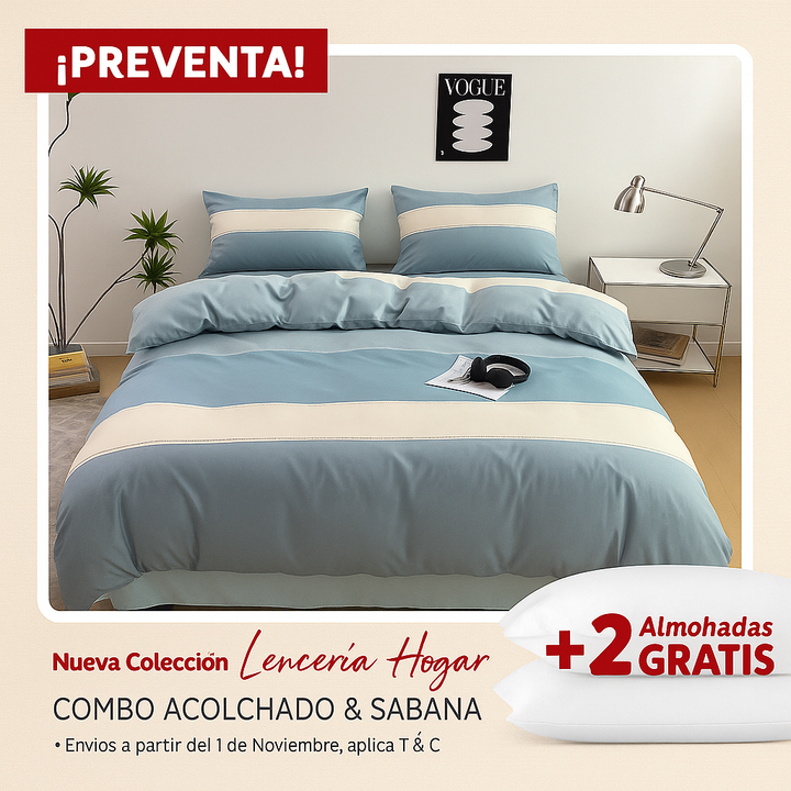 - Tipo: Edredón acolchado + Juego de Sábana.