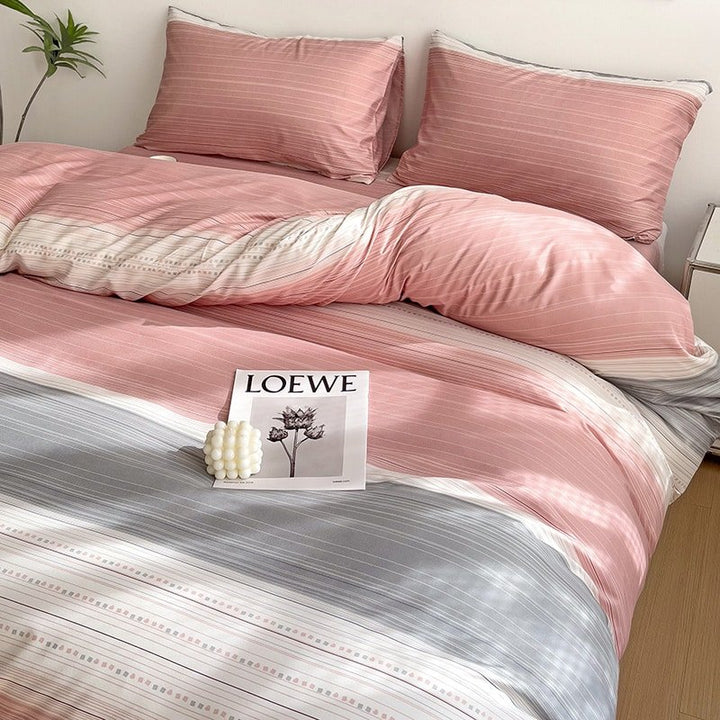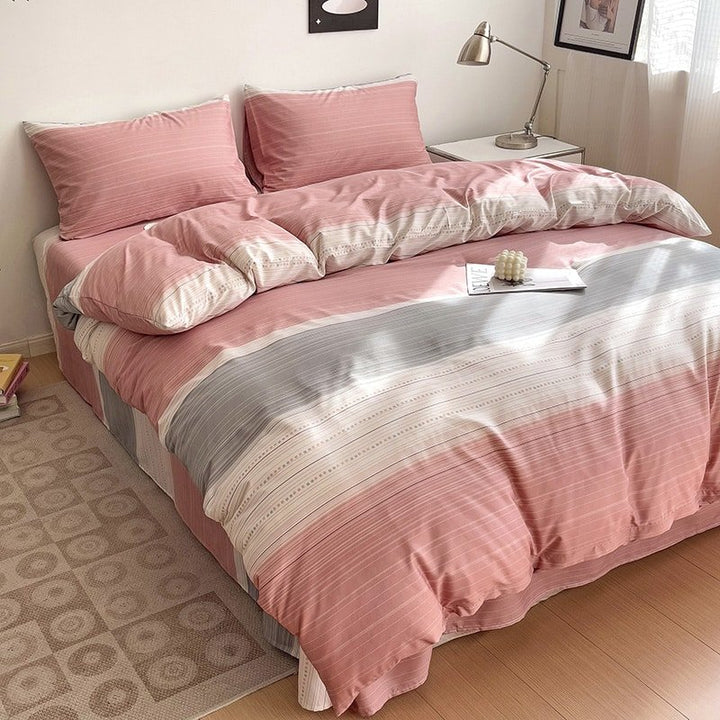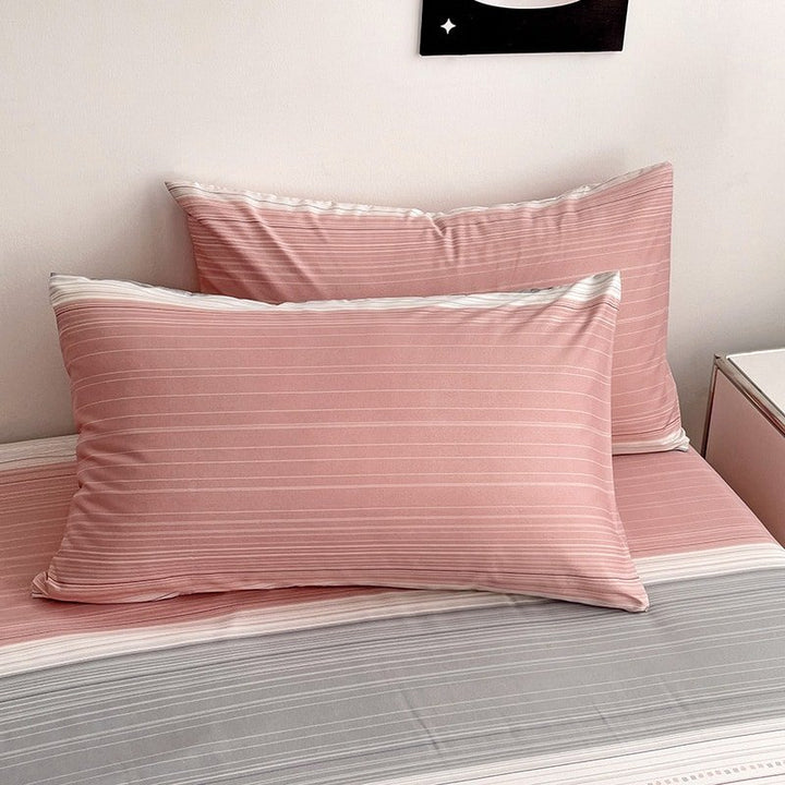 KIT ACOLCHADO + JUEGO DE SABANA LINEAS ROSAS + (2) ALMOHADAS