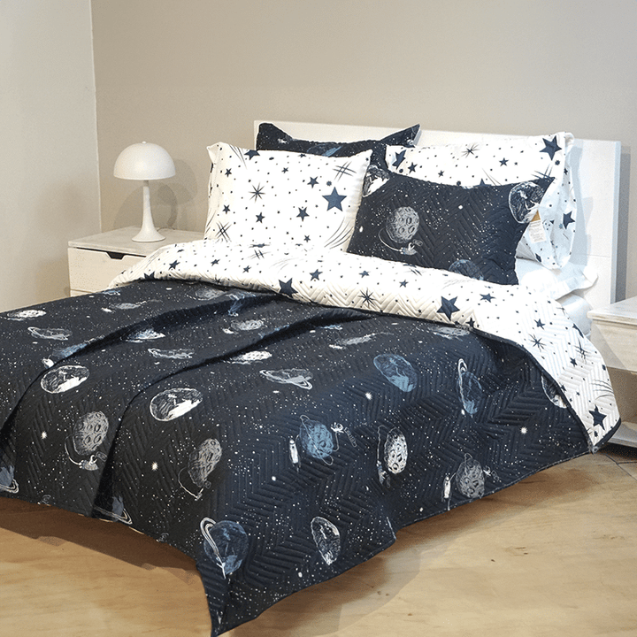 KIT COLCHA ULTRADELGADA + JUEGO DE SABANA ASTRONAUTAS
