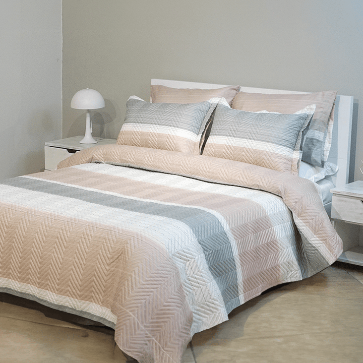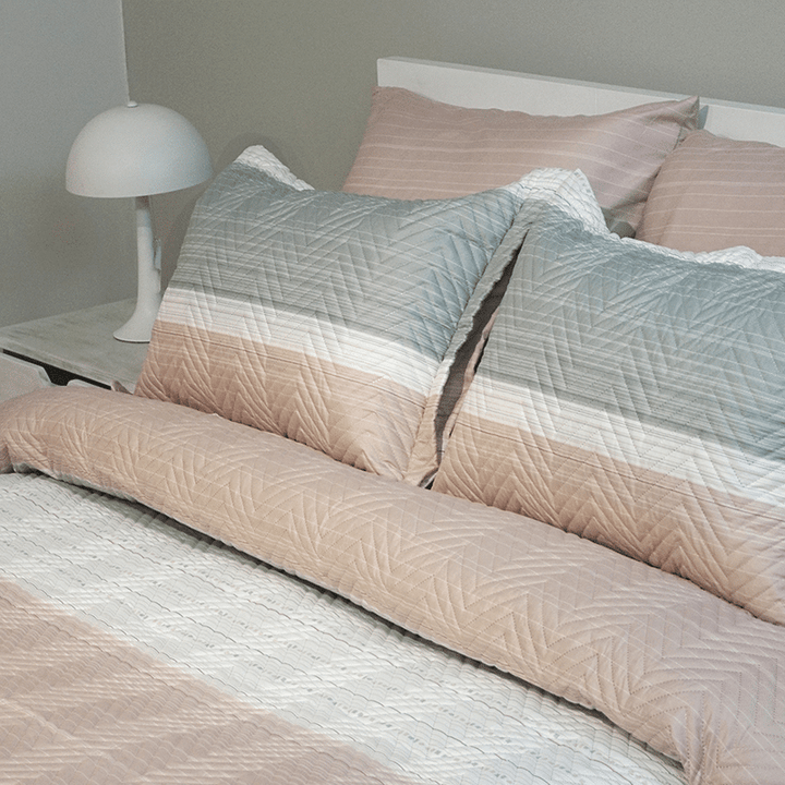 KIT COLCHA ULTRADELGADA + JUEGO DE SABANA LINEAS ROSAS