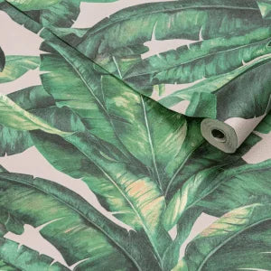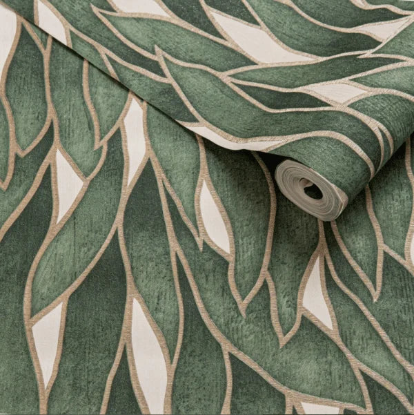 Papel de colgadura con un acabado rustico, en tono blanco y beige, con pequeños visos dorados.