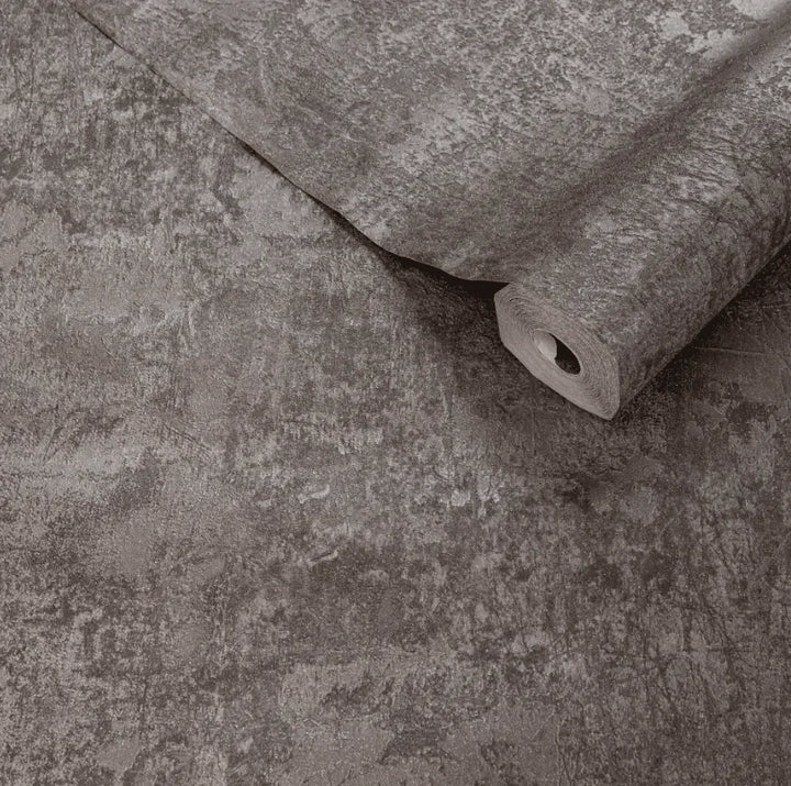 Papel de colgadura con un acabado rustico, en tono blanco y beige, con pequeños visos dorados.