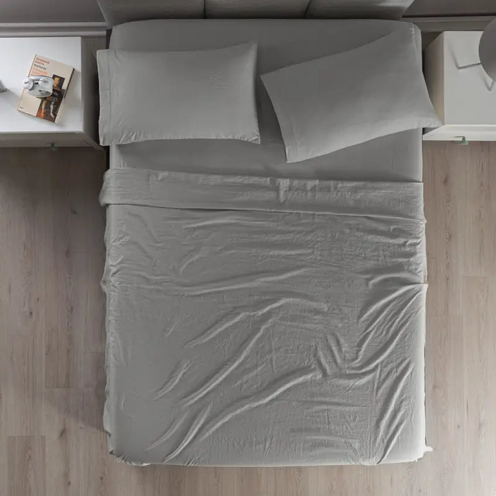 • EXTRADOBLE: 2 Fundas de almohada (0.77 x 0.50 m), 1 Sábana ajustable (1.50 x 1.90 x 0.38 m), 1 Sábana plana (2.26 x 2.57 m)