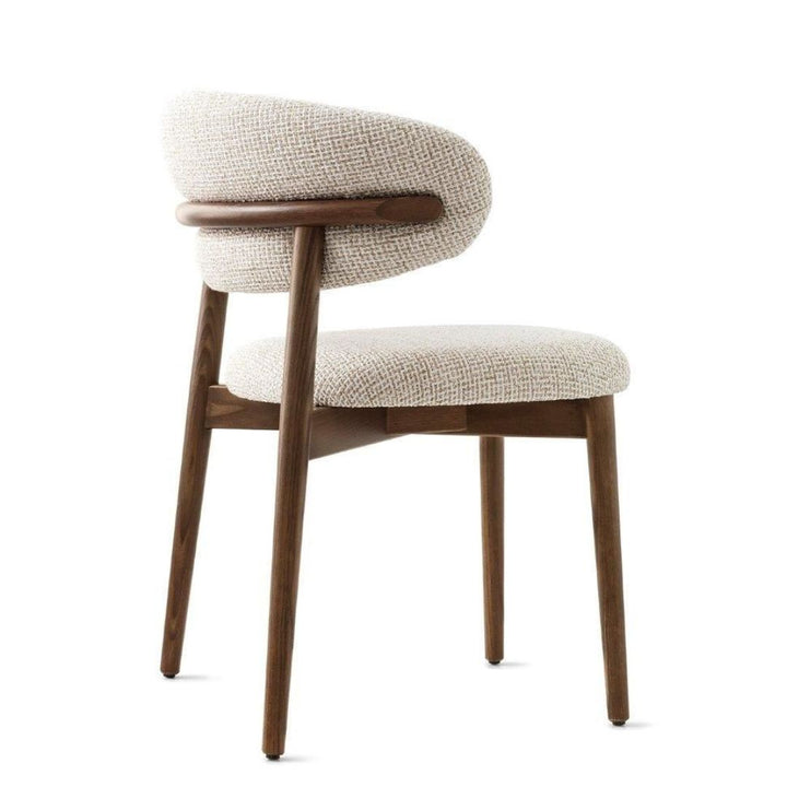 Está elaborada en madera de cedro y tapizada en tela tipo lino, ideal para quienes buscan calidez y resistencia en una sola pieza.
