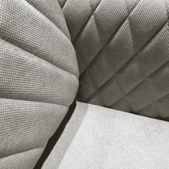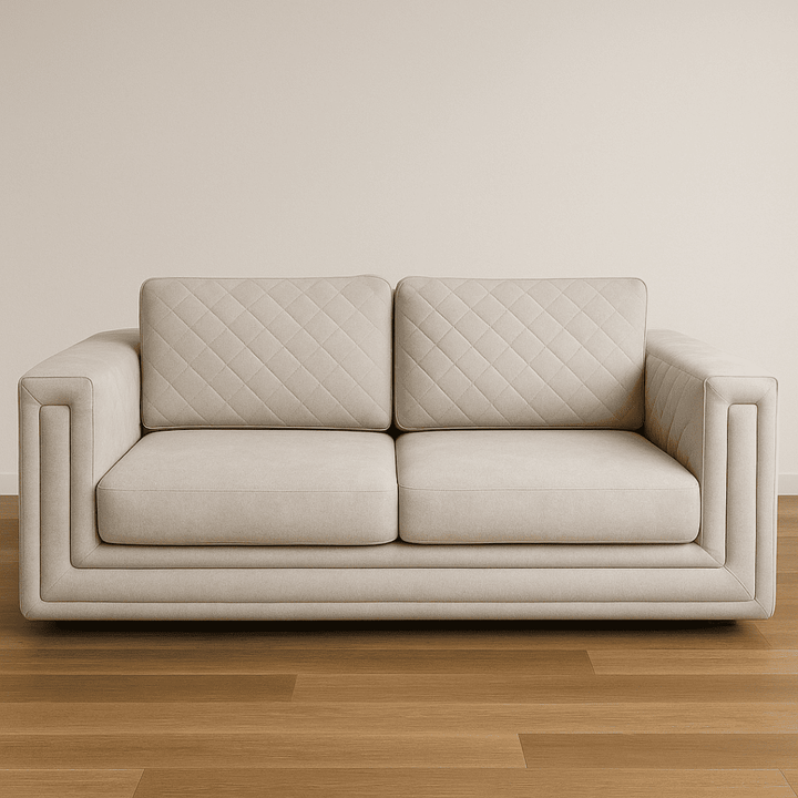 Diseño Acolchado: Sus cojines del respaldo presentan un delicado patrón acolchado en forma de rombos, que añade una textura visualmente atractiva y una sofisticación clásica.