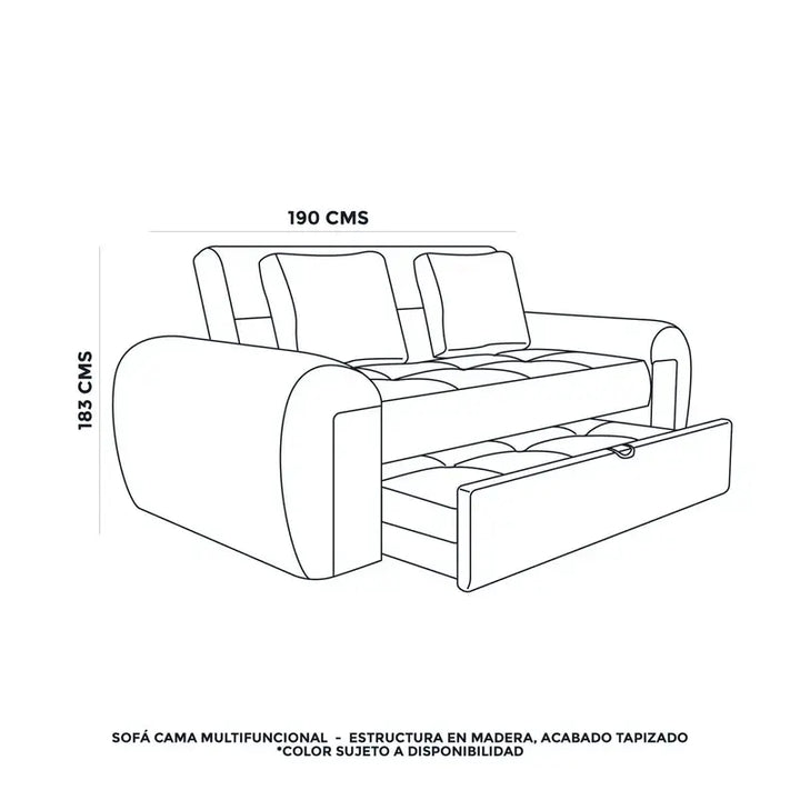 El Sofacama Multifuncional es un mueble fabricado con materiales de alta calidad y que se acomoda a sus espacios brindando comodidad a quienes lo usan. Sus medidas permiten que dos personas adultas puedan dormir cómodamente.